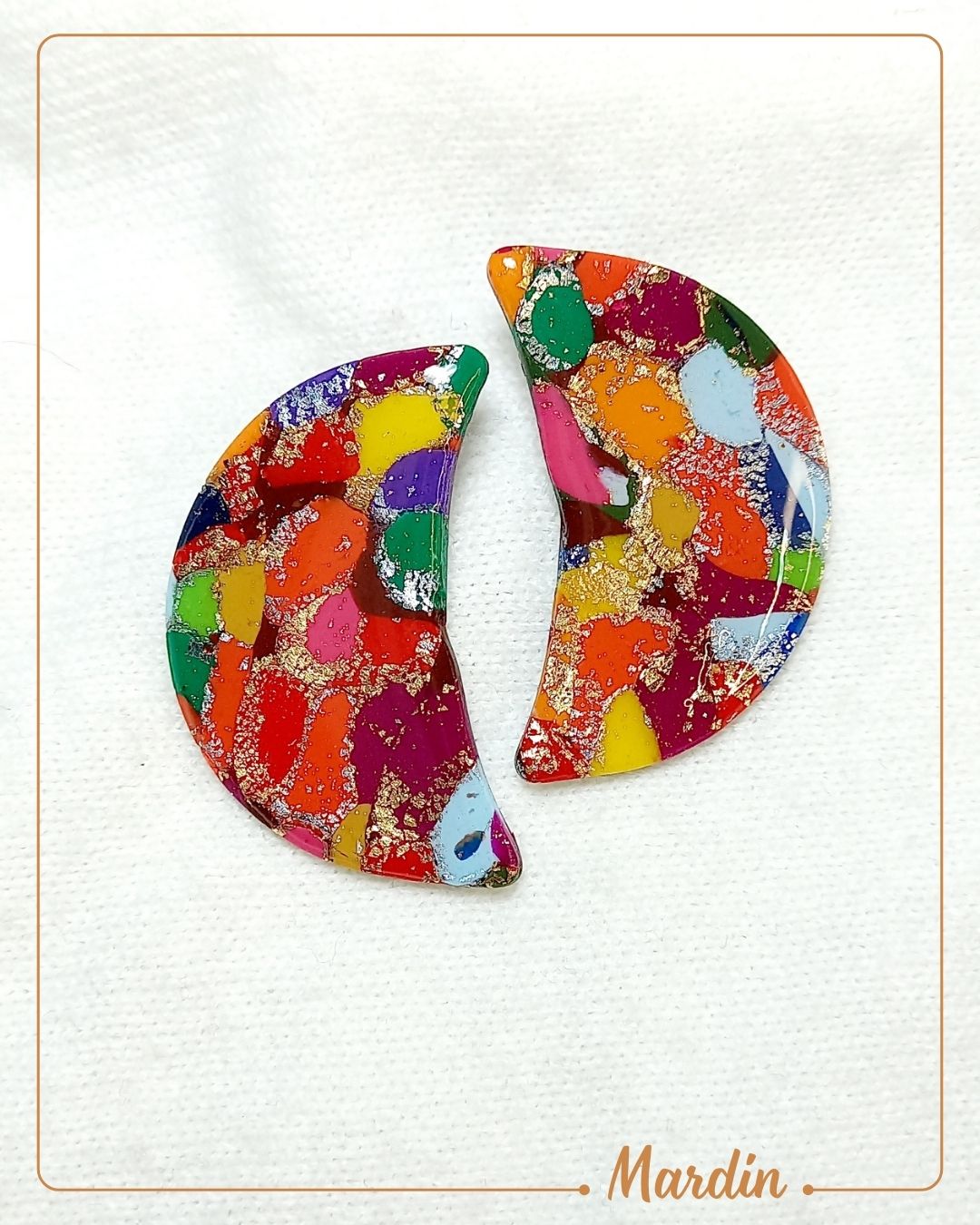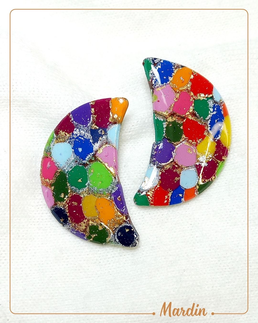 Mardin Seri Çok Renkli Polimer Kil Hilal Küpe