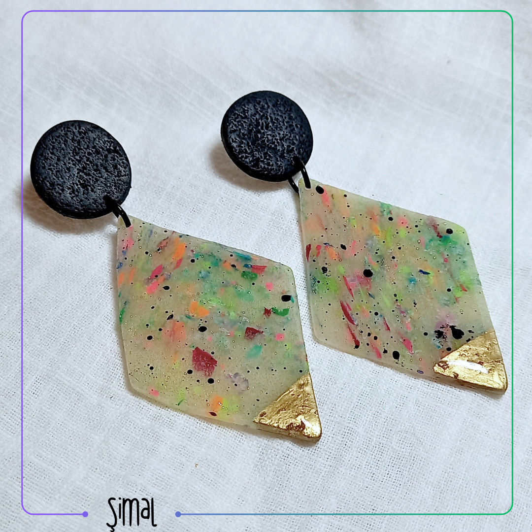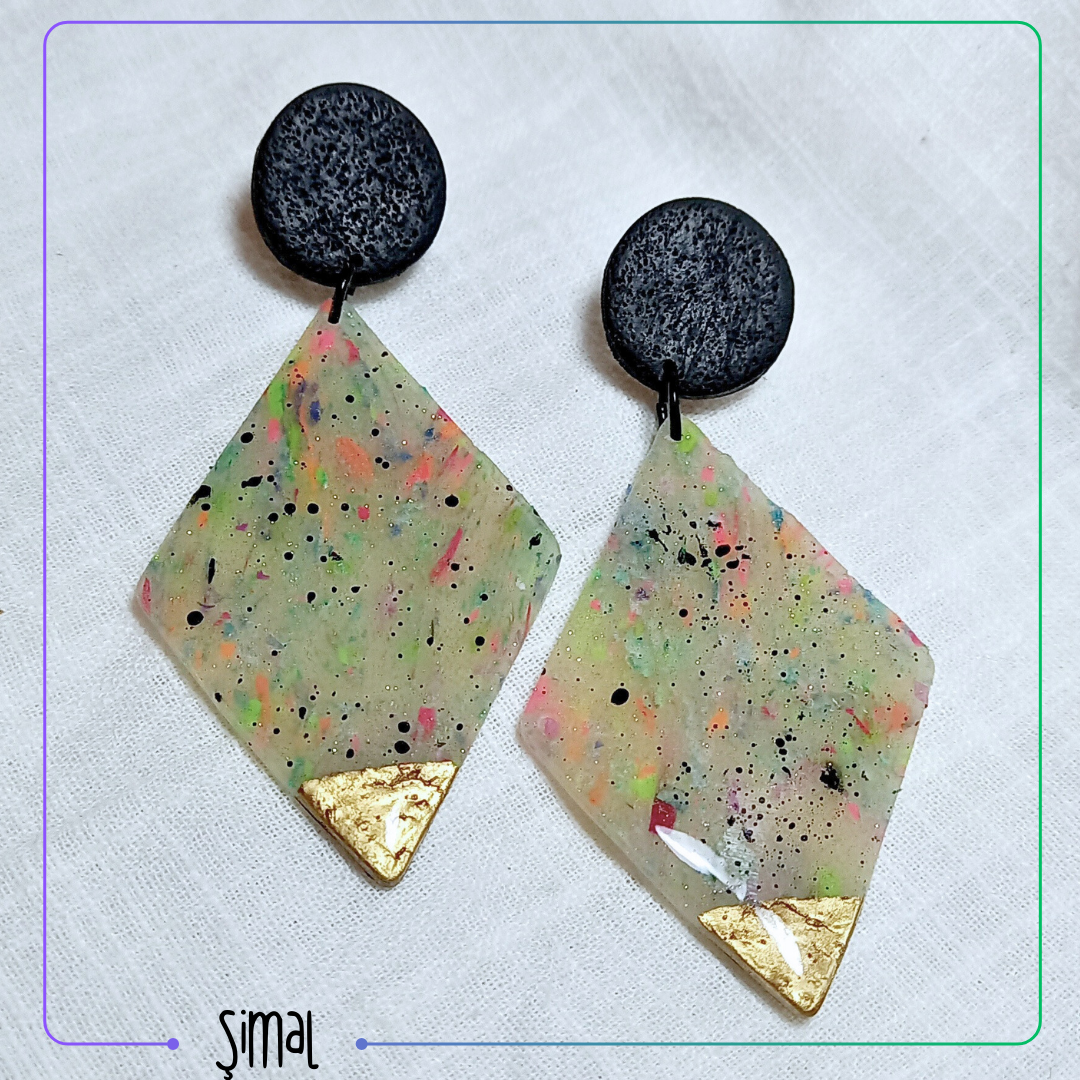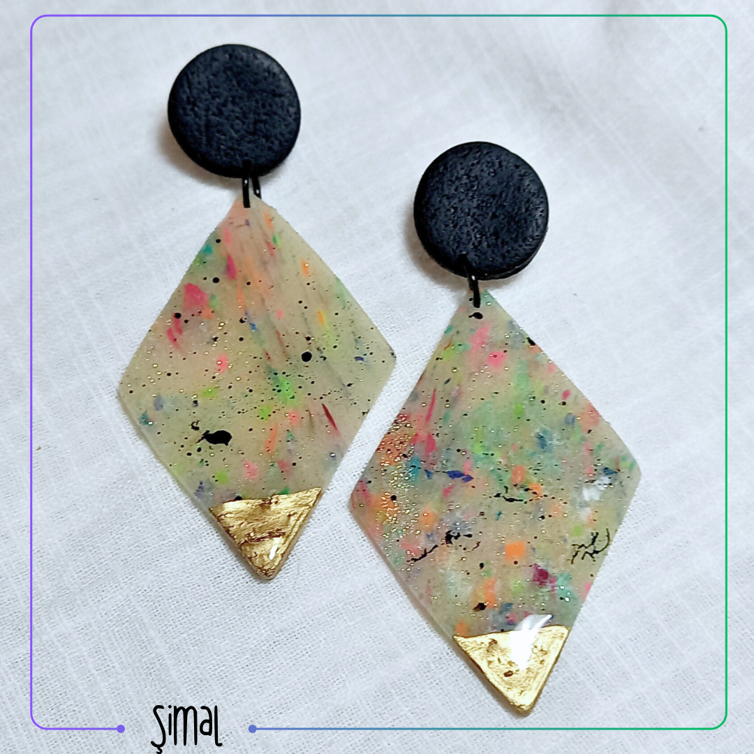 Şimal Yarı Saydam Çok Renkli Karo Polimer Kil Küpe